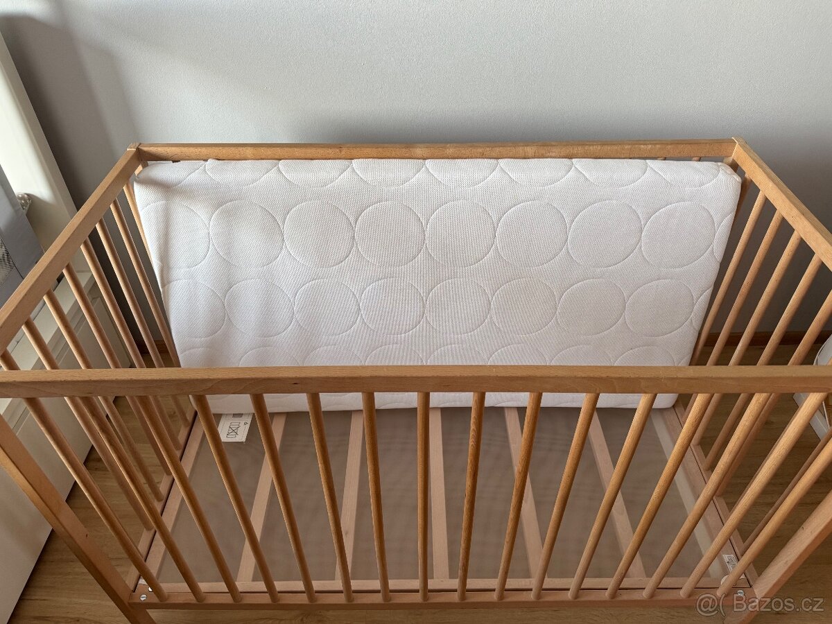 Ikea postýlka včetně matrace a obalu na matraci. Pouze osobní odběr Blažovice.