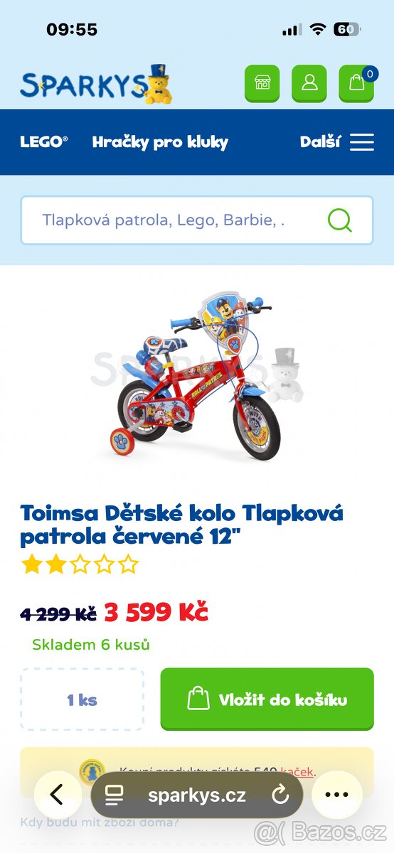 Dětské kolo Toimsa Tlapková patrola 12"" v červené barvě. S originálním designem Tlapkové patroly a rozšířenými bezpečnostními prvky poskytuje vašemu dítěti nejen vzrušující jízdu, ale i bezpečný start do světa cyklistiky. Hlavní vlastnosti: Postranní kolečka: Poskytují dodatečnou podporu při učení rovnováhy Tematický design Tlapkové patroly: Celý bicykl je ozdoben oblíbenými hrdiny, kteří budou inspirovat k záchranným misím Držák na láhev s lahví: Praktický doplněk pro dodržování pitného režimu během jízdy Přední ozdobný panel: Stylový prvek s motivem Tlapkové patroly Duální brzdový systém: Přední čelisťové a zadní bubnové brzdy pro maximální bezpečnost Nafukovací pneumatiky: Zajišťují optimální přilnavost a pohodlnou jízdu na různých površích Technické specifikace: Doporučený věk: 3+ let Výška dítěte: 85 až 100 cm Barva: Červená Velikost kol: 12"" Výška sedla: nastavitelná pro optimální komfort Výška řídítek: nastavitelná pro růst dítěte Materiál kol: Nafukovací pneumatiky Výhody nafukovacích pneumatik: Přilnavost: Lepší záběr na různých površích Tlumení nárazů: Vynikající absorpce nerovností terénu Jízdní komfort: Poskytují plynulejší a pohodlnější jízdu Ovladatelnost: Přesnější reakce při řízení Všestrannost: Vhodné na různé povrchy včetně asfaltu, štěrku i trávy Toimsa dětské kolo Tlapková patrola 12"" je špičkovým prvním kolem, které promění každou projížďku v záchrannou misi plnou dobrodružství! S duálním brzdovým systémem, držákem na láhev a designem s oblíbenými hrdiny se stane nepostradatelným společníkem při každodenních výpravách vašeho malého záchranáře. Poznámka: Po zakoupení je potřeba kolo správně sestavit a zkontrolovat, zda jsou všechny spojovací prvky a komponenty řádně utaženy. U nafukovacích pneumatik je důležité pravidelně kontrolovat tlak vzduchu a udržovat ho na optimální úrovni.