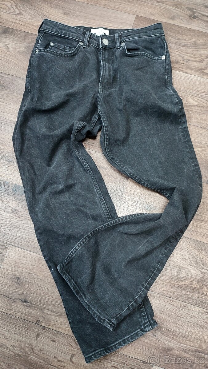 Málo nošené dívčí rifle černé barvy značky H&M v super stavu. Vel.34, širší nohavice. Odhad v dětské velikosti 158/164