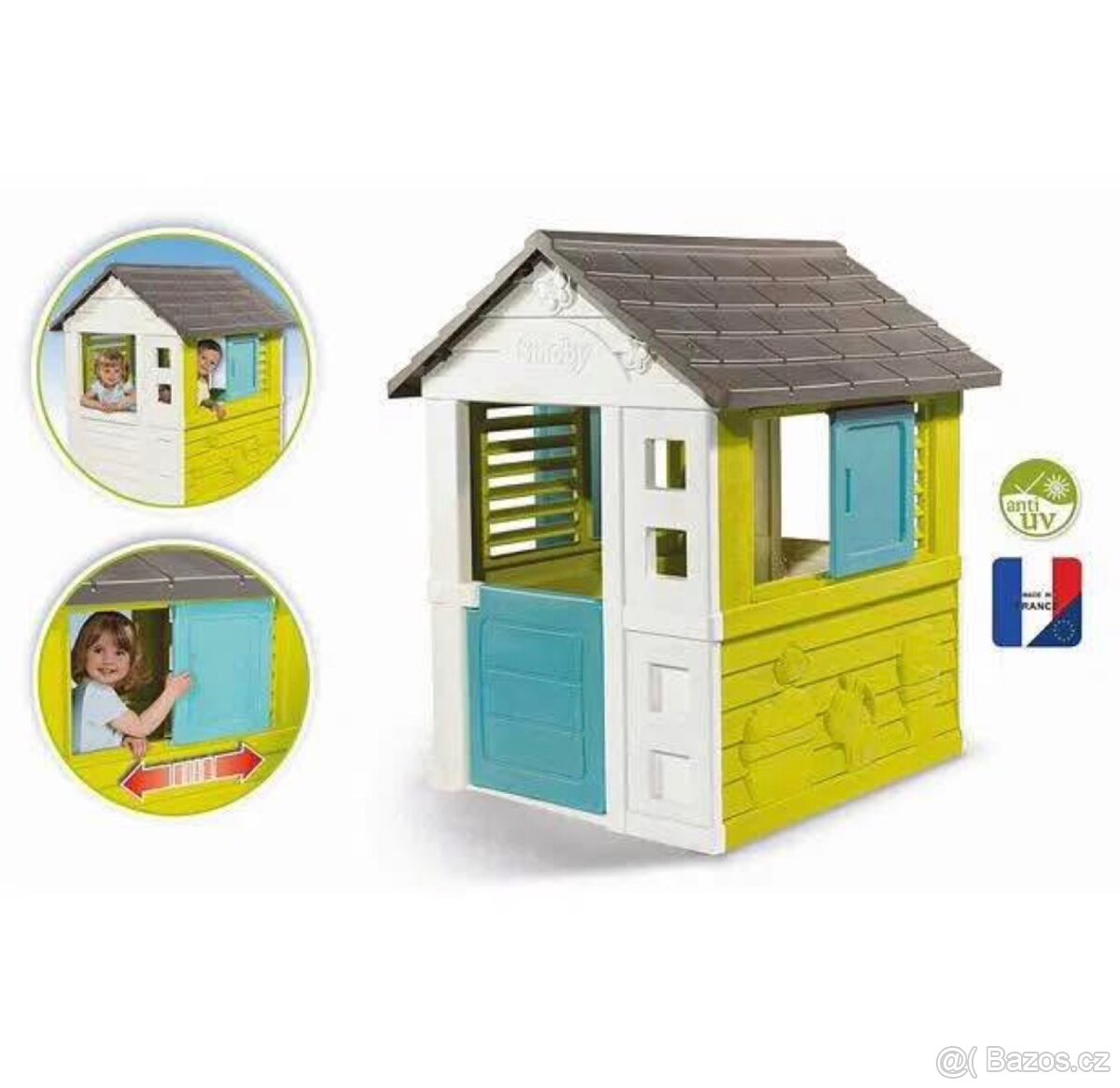 Prodám domeček Smoby, je v TOP stavu. Je opravdu prostorný, pevný a kvalitně zpracovaný. Koupen 7/24, mám k němu fakturu a krabici. Je ještě v záruce. Využívaný pod zastřešenou pergolou. Nepoškozen, barvy stále stejné. Lze i rozložit(může si provést kupující), snažší je ho přepravit v celku. Zdarma přidám podložkové puzzle, na kterém domeček stojí. Není tedy ani na spodní části poškozen.