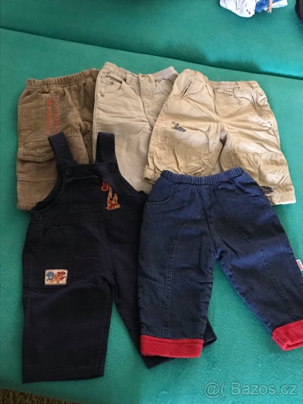 Kojenecké chlapecké kalhoty džínové, manšestrové, plátěné, zateplené. Vel. 68-74. Cena 80 - 120 Kč