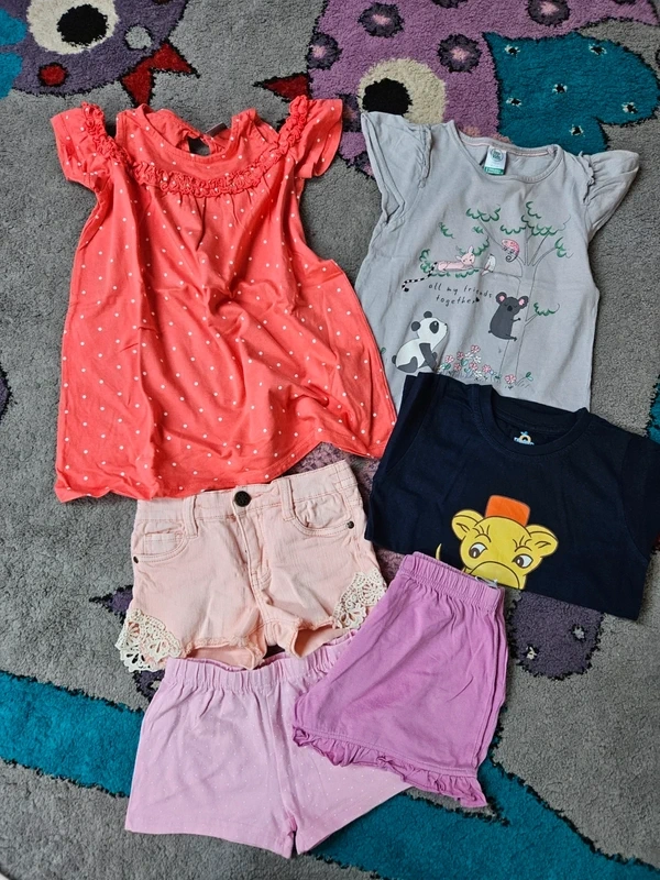Set oblečení pro holčičku v.110 - [19.3. 2026]Set, mix značek v hezkém stavu. 2 x triko zdarma - od barviček viz. foto. Vel. 110