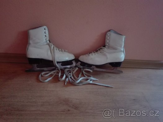 Bílé brusle - [9.3. 2026]Na půdě se našly staré dívčí brusle. Délka stélky 24 cm. Na botě zespodu 26.