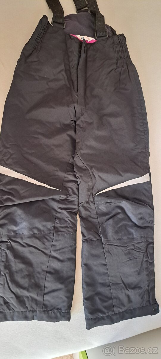 1. Černé oteplováky s reflexními prvky, zevnitř zateplené, psaná vel. M, jako nové, délka od pasu dolů 99cm, pas v klidu 35cm, při max. natažení 46cm;