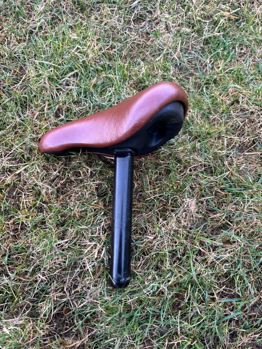 Sedlovka o průměru 25mm, délka cca 20cm. Sedlo o velikosti cca 20x14 cm, nepoškozené.