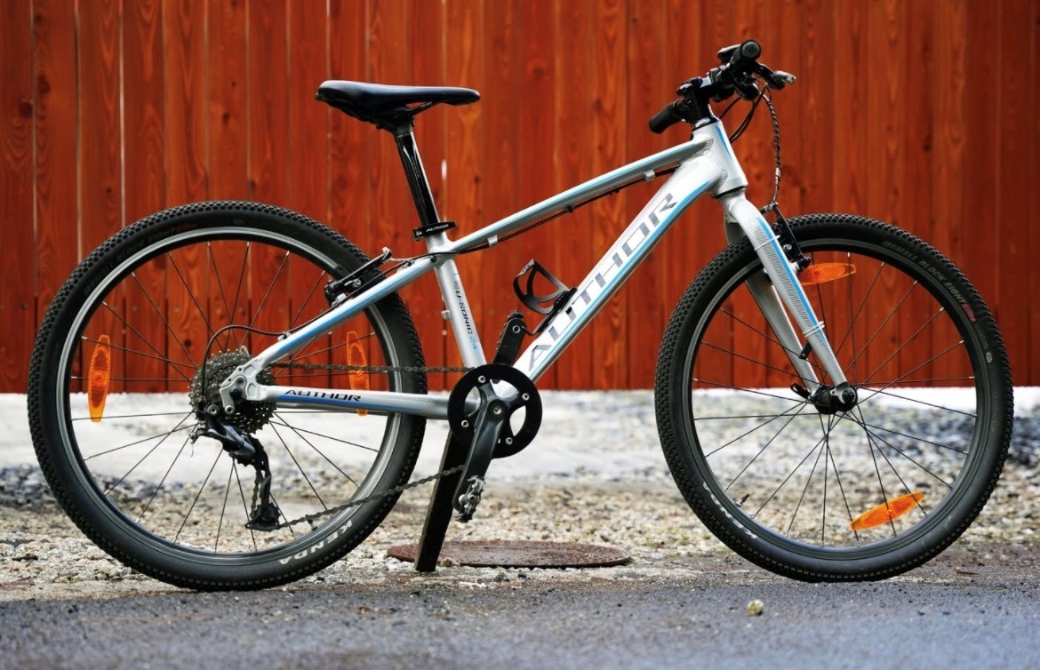 Prodám krásné lehké kolo zn. Author Ultrasonic, vel. rámu 12.5, vel. kol 24, duralový rám, vhodné pro výšku 125-150 cm (6-9) let.