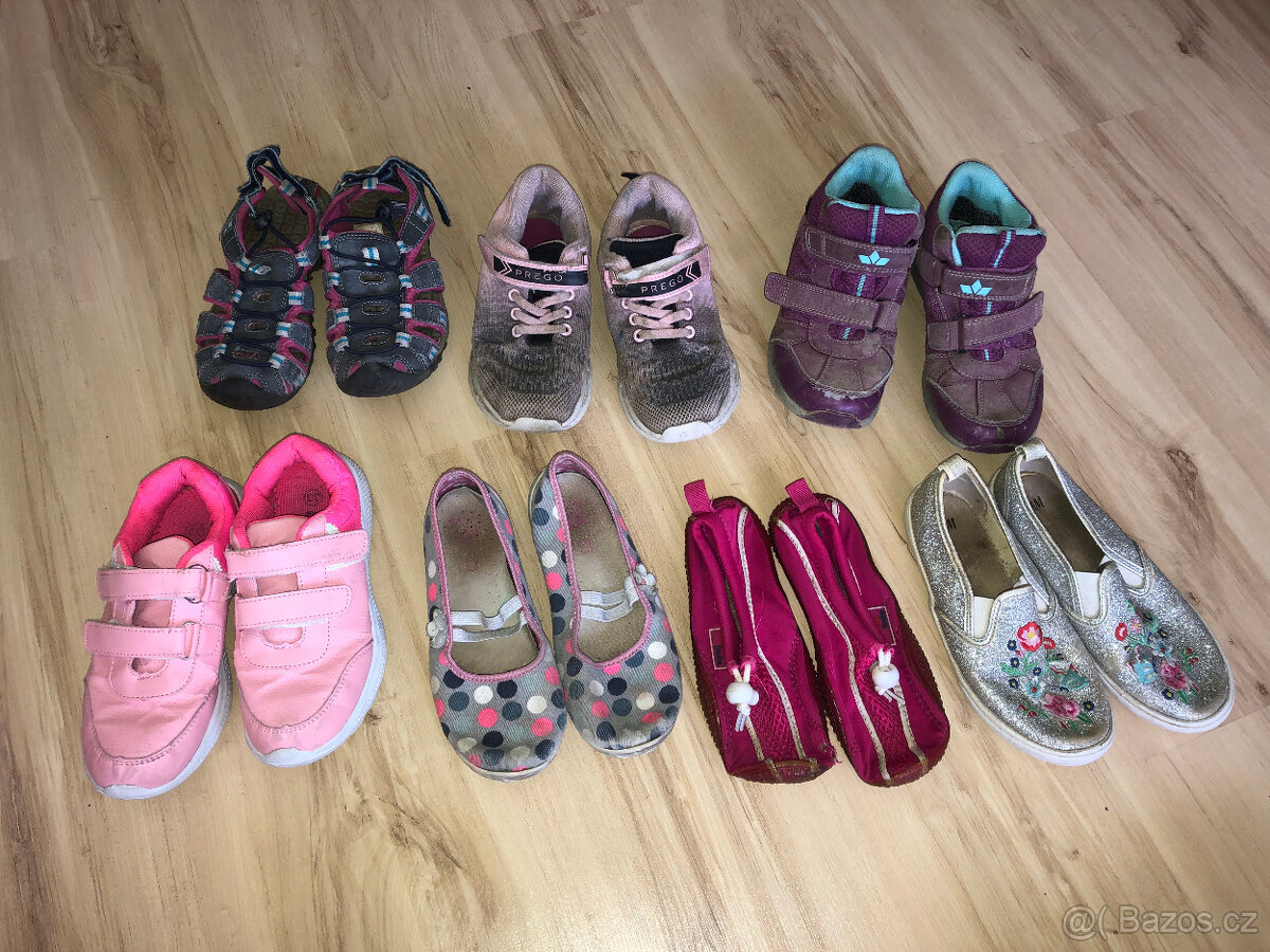 Sandále , 2x tenisky, pohorky, 2x balerínky, boty do vody.