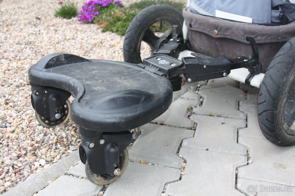 Prodám stupátko. Pasuje na většinu kočárků, díky uchycení za svislé, nebo vodorovné části konstrukce kočárku. Používané málo.