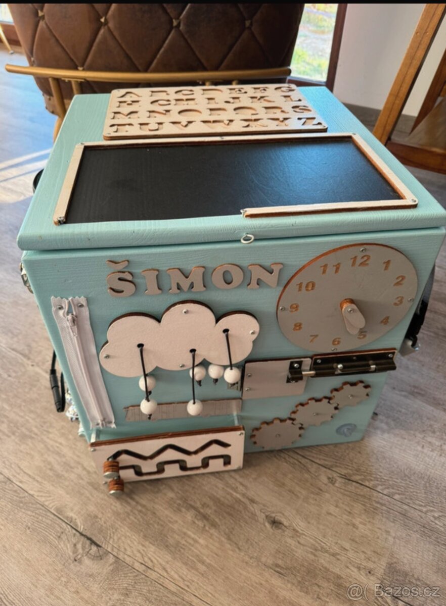 Úložný box activityboard Montessori - [10.3. 2026]Chybí jedno písmenko a číslice. Jinak v perfektním stavu. Osobní vyzvednutí KV-Sokolov. Vysoká pořizovací cena. Velikost 40x40cm