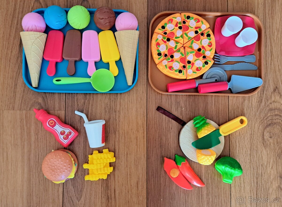 Prodám dětské plastové sady pptrsvin na hraní do kuchyňky. Ve velmi dobrém stavu.