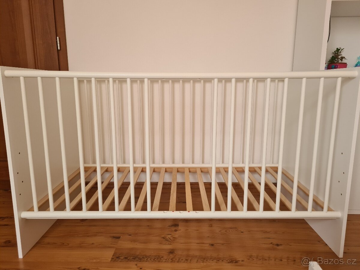 Prodám dětskou postýlku s výškově nastavitelným roštem.