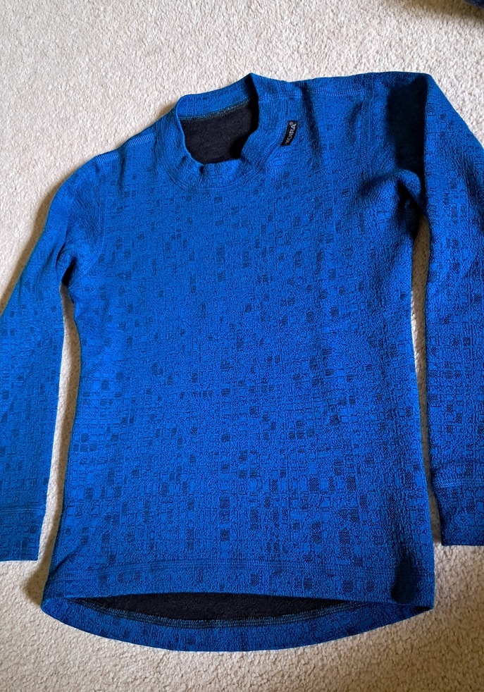 Funkční triko Moira Merino vel. 130 - délka 44,5 cm přední díl, 48,5 zadní díl, délka rukávu 43 cm, šíře pod průramky 34 cm. Z příjemného dvouvrstvého úpletu Merino Moira s gramáží 235 g/m2, stálá protizápachová úprava, obsahuje ionty stříbra, vysoce funkční, rychle odvádí vlhkost od těla, vysoká hřejivost při nižší gramáži, výborně tepelně izoluje. Nošeno jednu zimu, ve vynikajícím stavu.