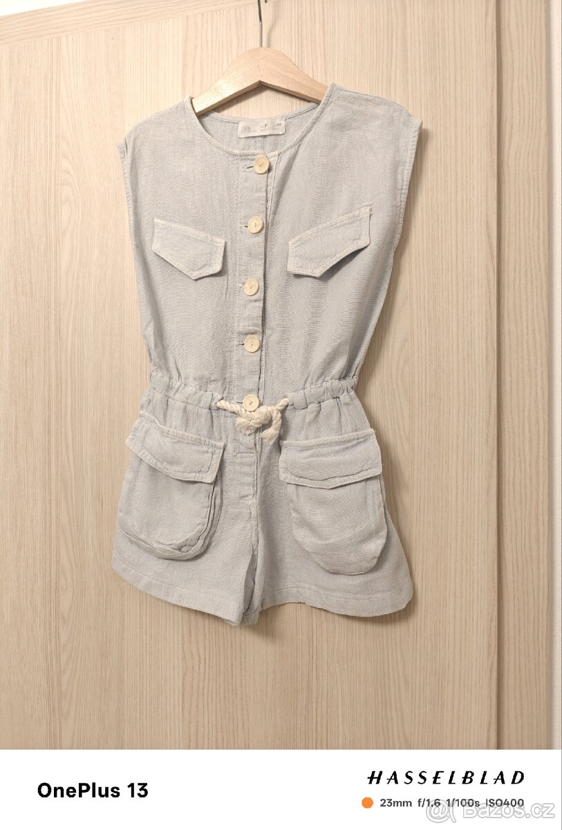 DÍVČÍ LETNÍ OVERAL - vel. 158 - [31.1. 2026]Prodám zelený vzorovaný dívčí letní overal zn. H&M, vel. 158. Horní díl nastavovatelná ramínka, v pase gumička, široké nohavice, dvě postranní kapsy. Nošený, bez vad. Cena bez poštovného. Osobní odběr možný v Praze.