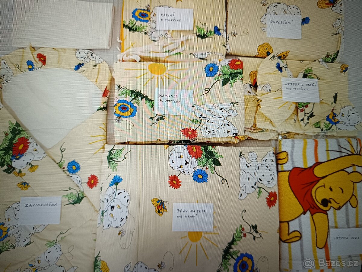Dobrý den, prodám neutrální sadu do postýlky pro miminko tj. zavinovačka, mantinel do postýlky, kapsář k postýlce, nebesa s mašlí, povlečení, prostěradlo, deku na přikrytí a deku na zem na hraní. Dále matraci, polštář a peřinku, bílou zavinovačku s mašlí a náhradní povlečení.