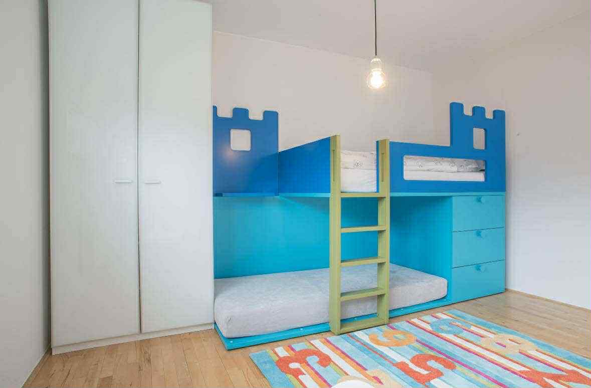 Prodám luxusní patrovou vysoce kvalitní postel od španělské značky JJP. Může být pro dvě děti, nebo spodní část může sloužit jako prostor ke hraní. Velký úložný prostor, vedle postele polička, na fotce není vidět. Krásná kombinace barev tyrkysová, kobaltová modrá, schůdky olivová zelená. Zadní stranu spodní časti lze polepit tabulovou tapetou.Měli jsme v plánu, nakonec k tomu nedošlo. Pořízovací cena bez matrací přes 70 tisíc.