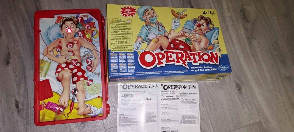 Dětská hra, kdy každý z hráčů se snaží vyndat dílek (nemoc) z pacienta, aniž by se dotkl železné části. Při doteku se pacientovi rozsvítí nos. Mělo by i bzucet, ale buď jsou slabé baterie nebo už nefunguje. Výhodou je, že tuhle hru může malý lékař hrát i sám.