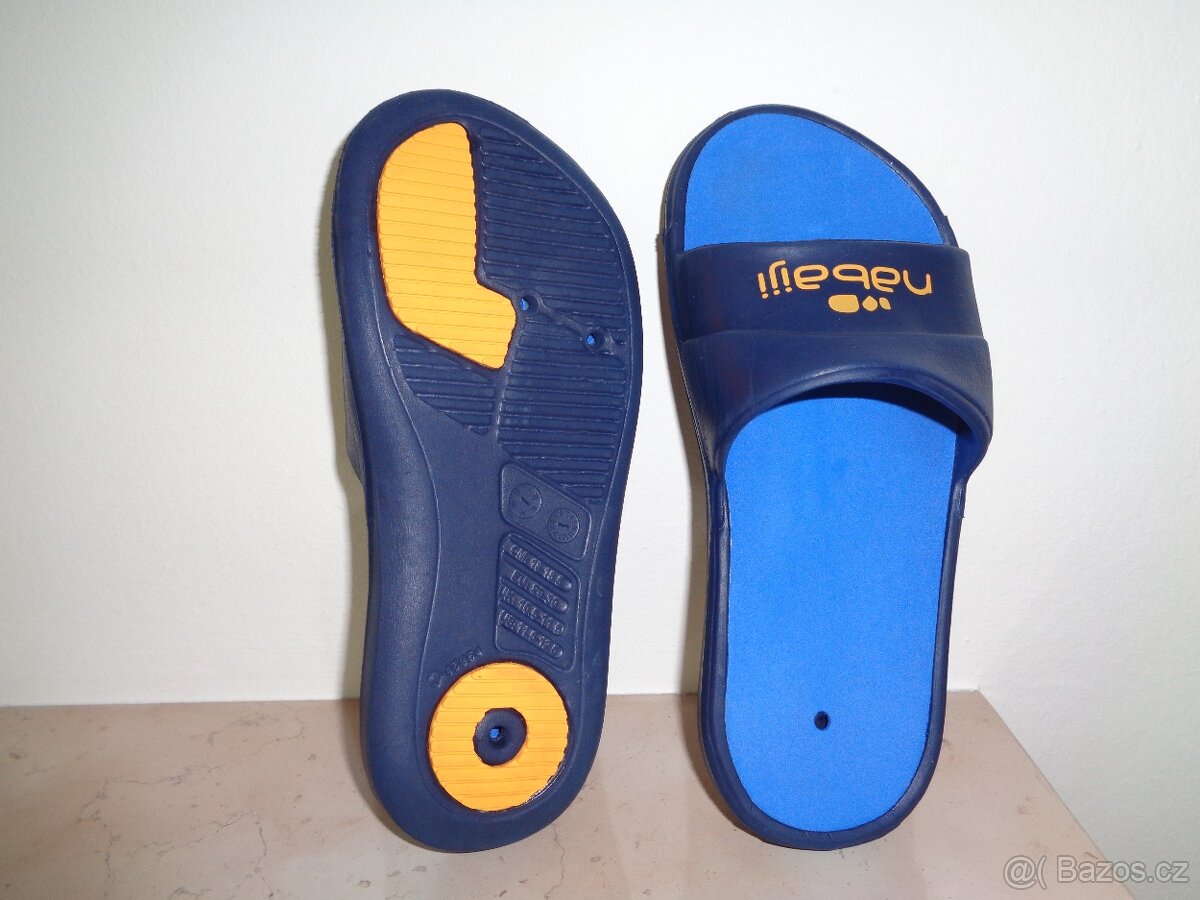 -Gumové pantofle modré s dinosaury, vel.30. Cena 15Kč ...