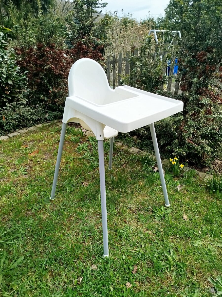 Prodám dětskou jídelní židličku s podnosem značky IKEA Antilop. Chybí bezpečnostní pásy a podnos má místy poškození viz foto.