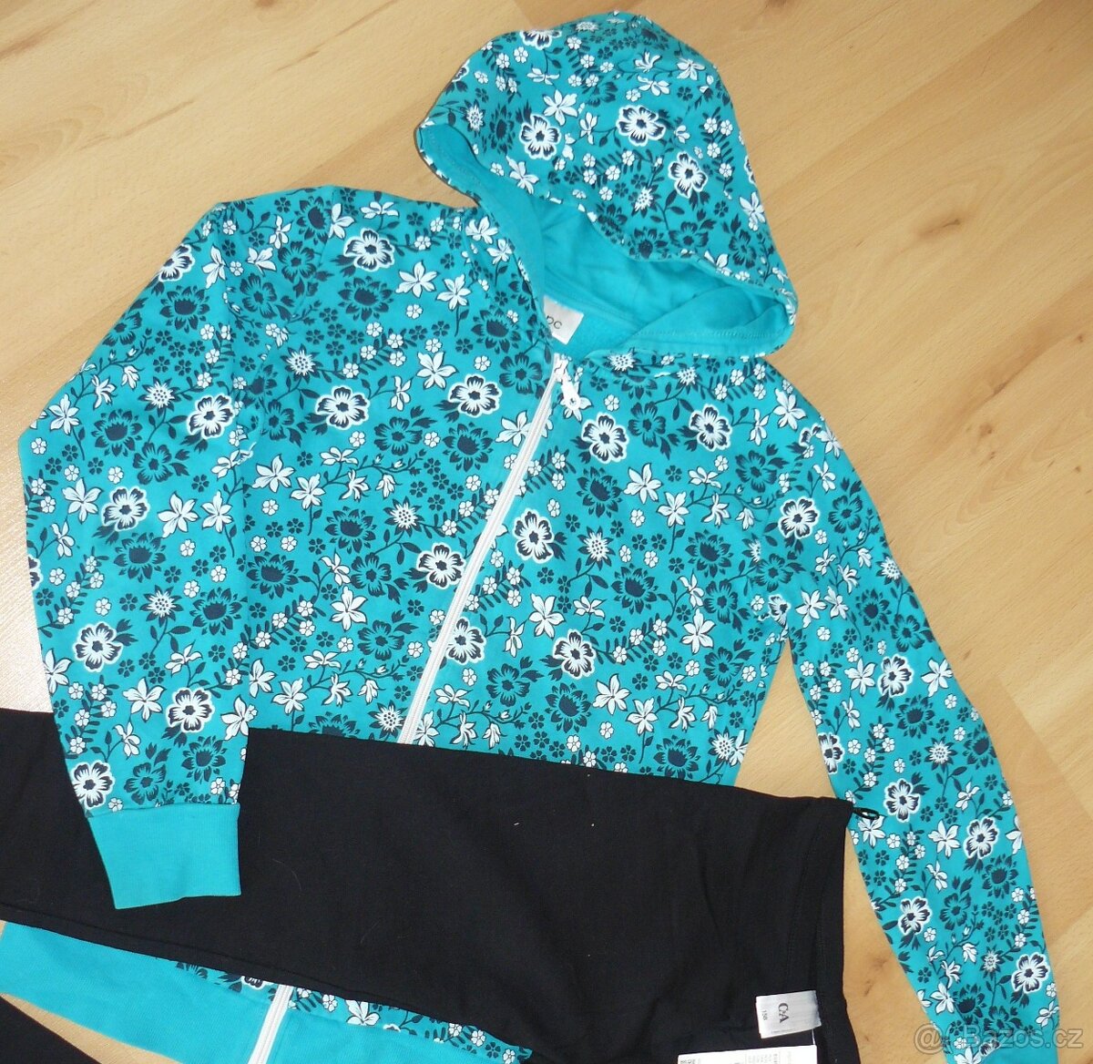 Dívčí mikina s kapucí, klokanka, vel. 146-152 - [29.3. 2026]Nošená. Bez vad. Délka 55 cm, šířka 42-46 cm, rukáv celkem 66 cm. 95% bavlna, 5% elastan