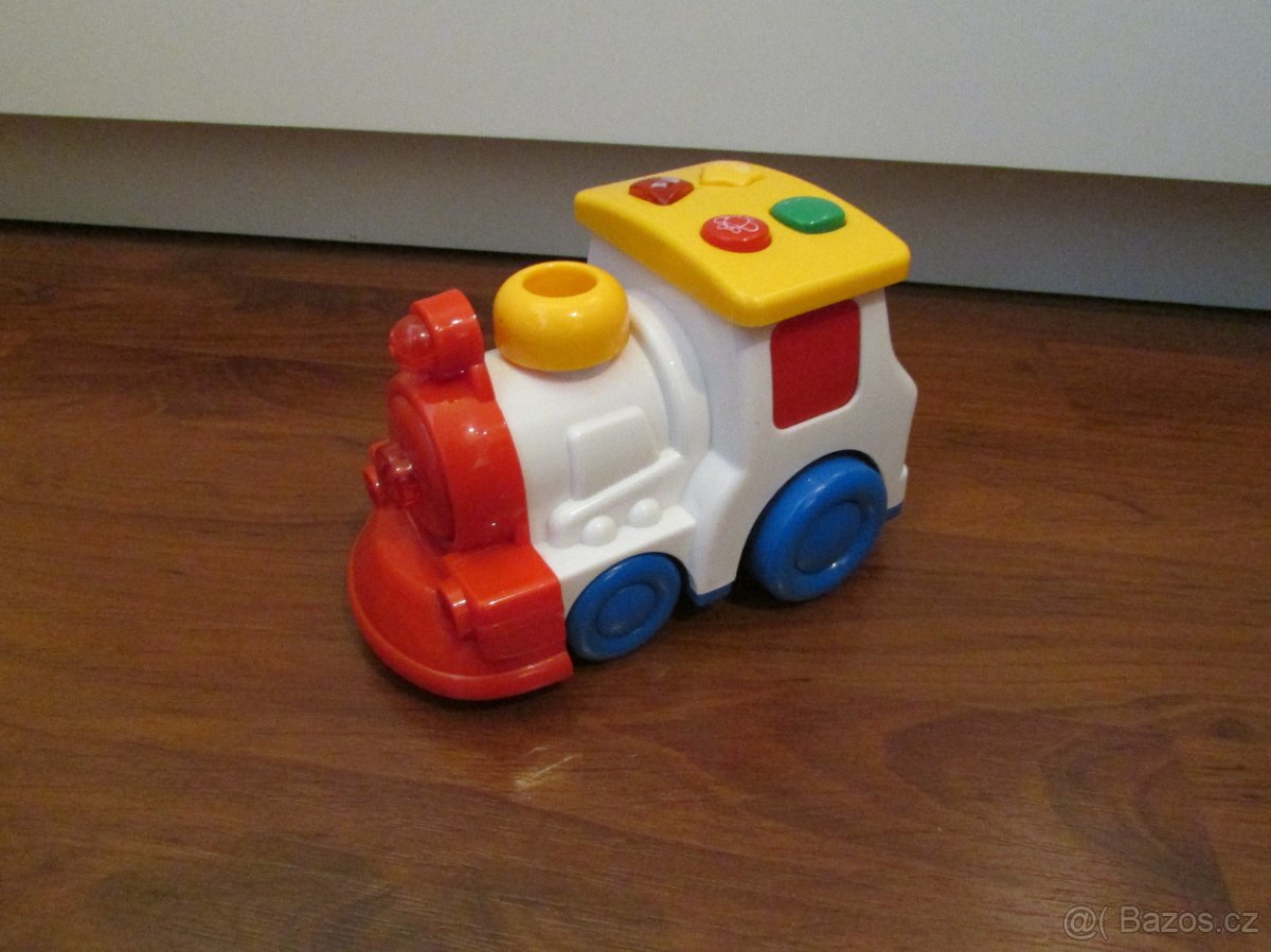 1.Mašinka na baterky. Hraje různé zvuky. Akorát chybí kryt na baterie, dá se přelepit tvrdým papírem, tak jsme to měli my.
