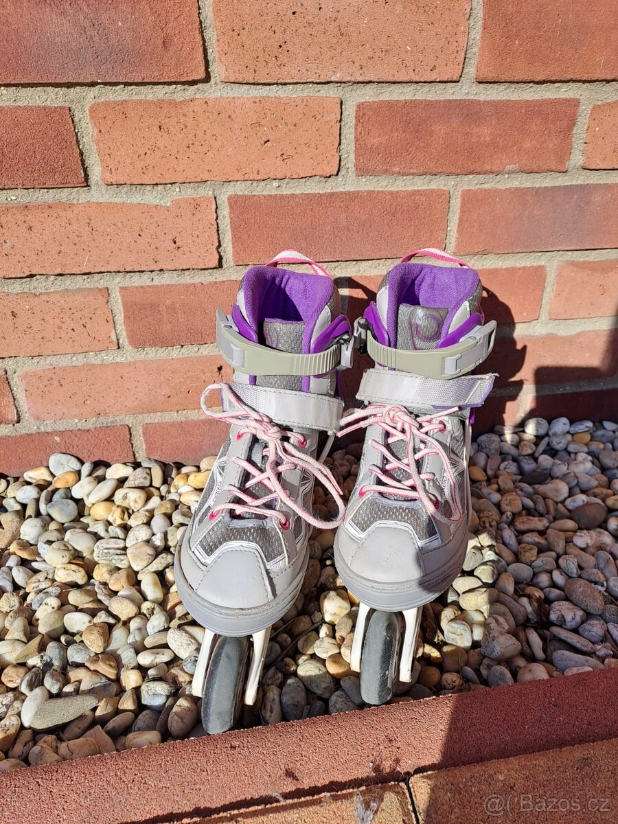 Dobrý den, nabízím dětské brusle Oxelo, které jsou ve velmi zachovalém stavu jen na pár místech trochu poškrábané, ale jinak jsou bez vad a ve vel. 32-35. Na jedné brusli je brzda a velikost bruslí je nastavitelná.
