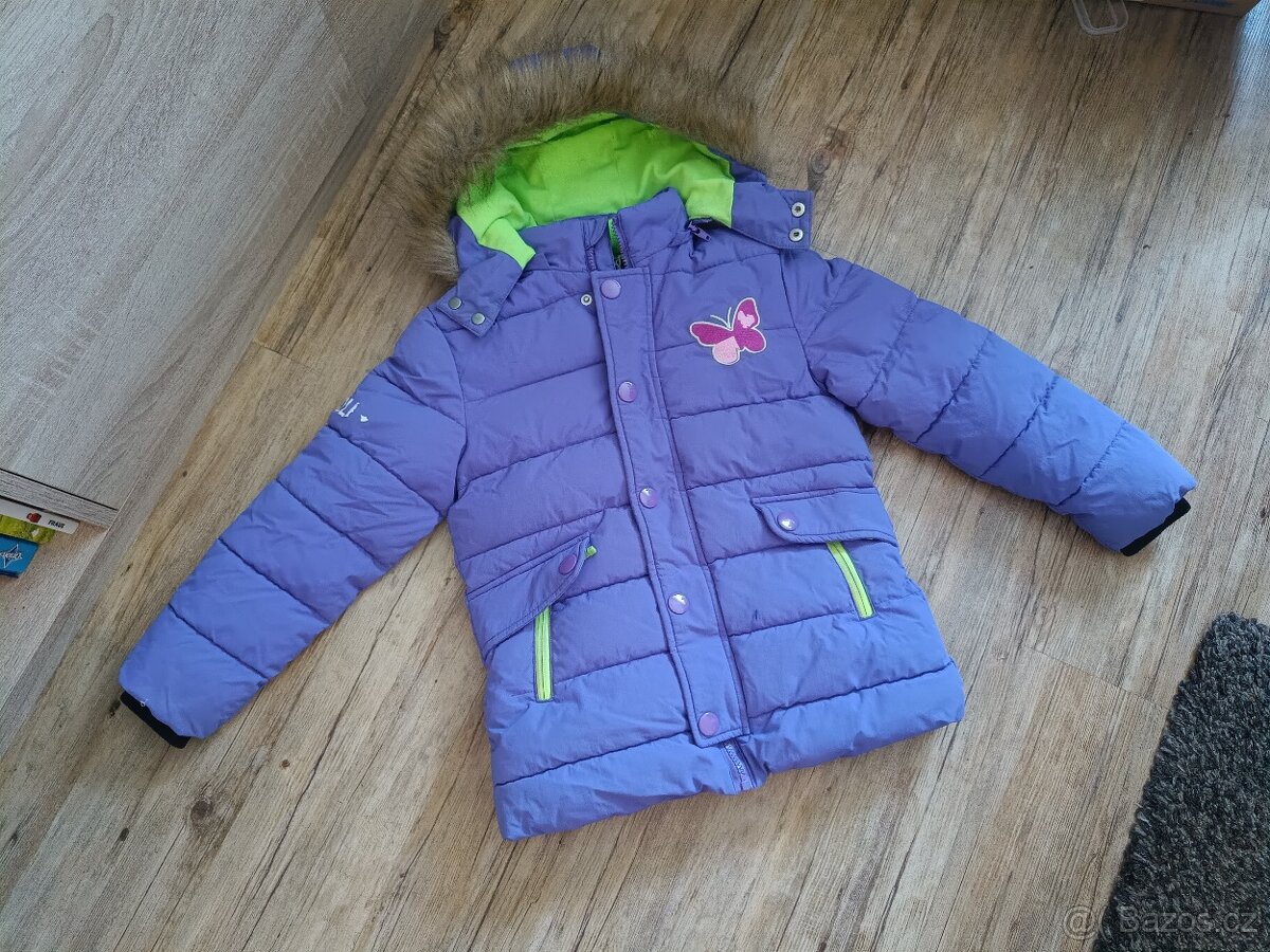 Zimní bunda Wolf, vel 122, už mám pouzedívč, odepínací kapuce, lyžařský pás. Cena za kus 300kč