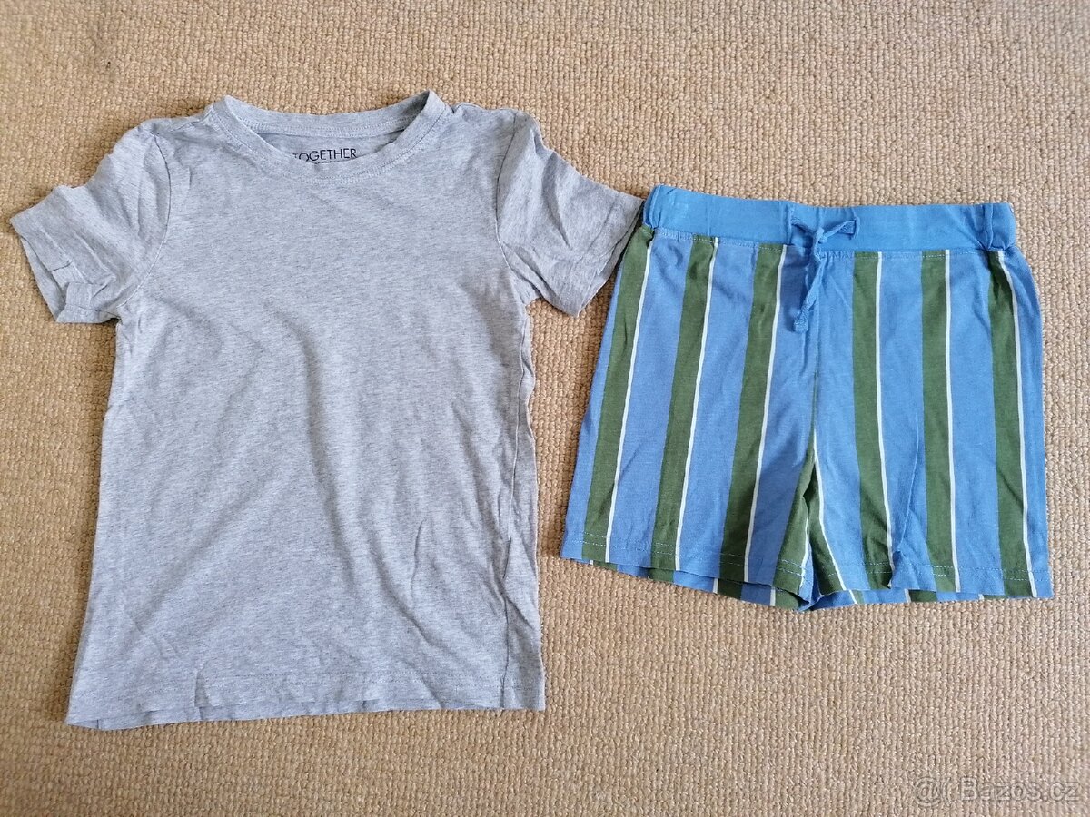 Prodám nádherné šedé pyžamo s krátkým rukávem s pruhovanými kalhotami osvědčené značky Tchibo. Velikost 122 /128. Jako nové. Materiál: 100 % bavlna.