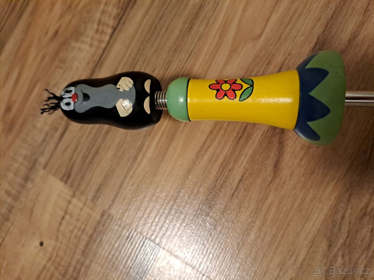 Prodám pěkný dětský deštník s Krtečkem, držadlo s figurkou Krtečka, syté barvy, minimálně používaný. Cena 100Kč.