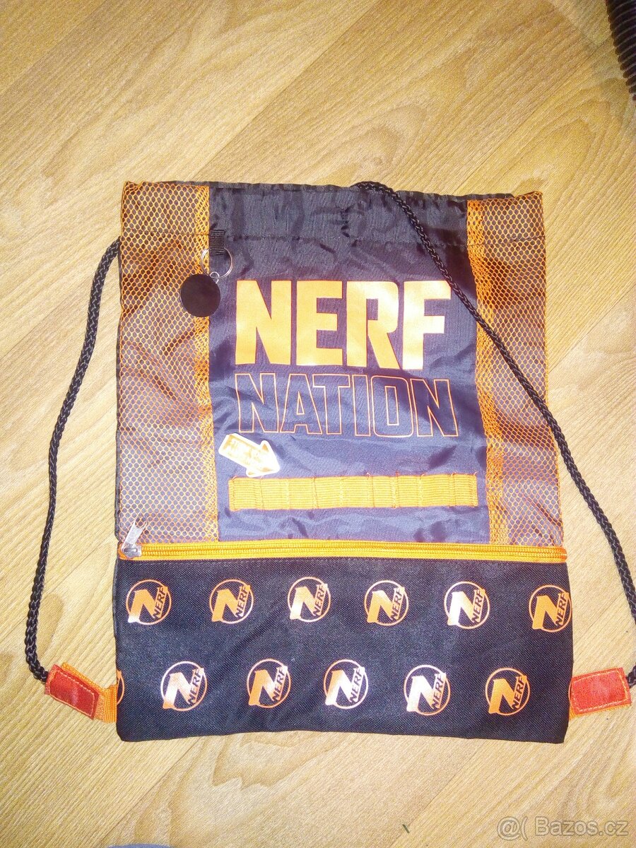 Nový sportovní vak Nerf, černo oranžová barva, vepředu kapsa ba zip. Velikost 37x30cm.