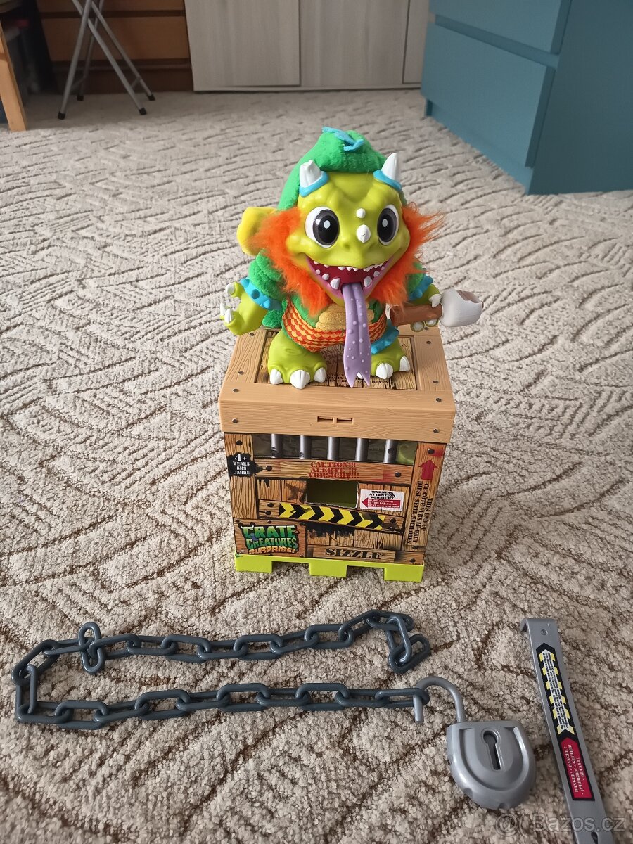 Velká příšerka, je na baterie vydává zvuky. Plně funkční. Bedna je vysoká 21 cm, příšerka 19 cm. Na YouTube videa. Prodej v Bamubuli, tento typ je již starší.