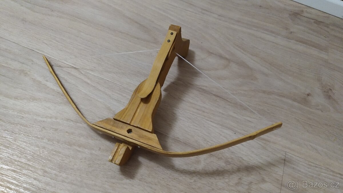Dřevěná dětská kuše - [18.4. 2026]Kuš je z masivního dřeva, povrch včetně hran je vyhlazen. Délka pažby je 60 cm a rameno 40 cm. Součástí jsou "náboje". V případě zájmu zdarma přidám brnění.
