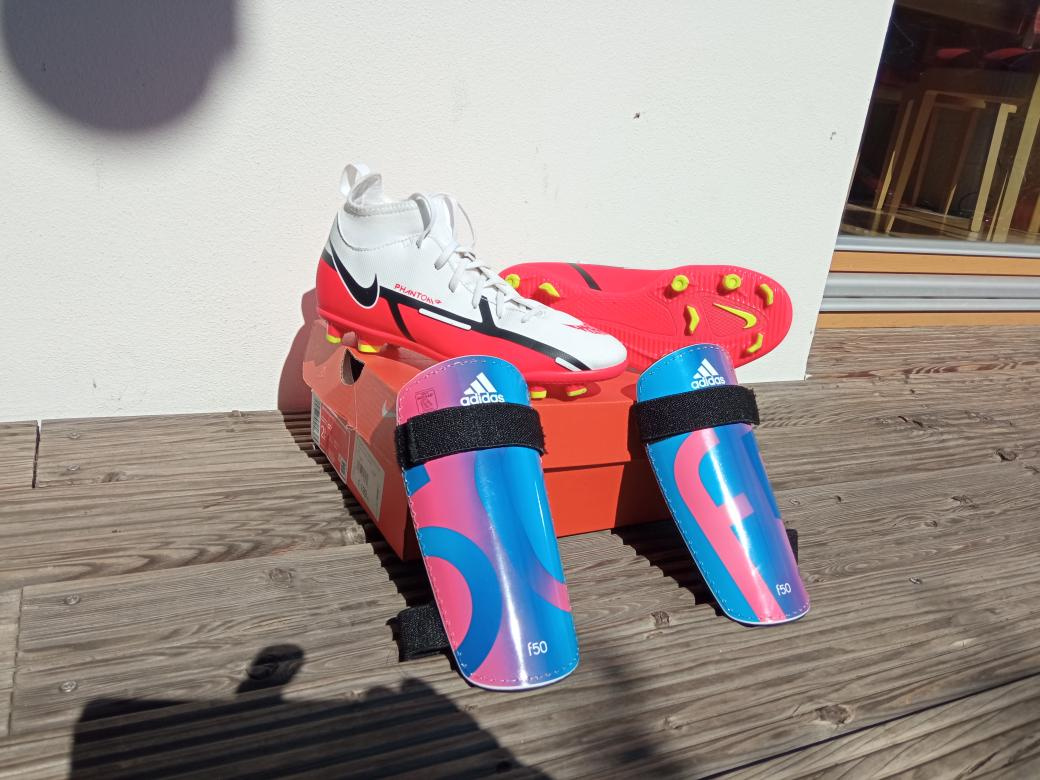 Prodám dětské kopačky zn. Nike, vel. 34, málo používané, plus chrániče holení zn. Adidas.