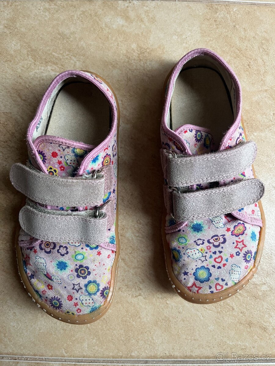 Barefoot tenisky 28 Froddo - [17.3. 2026]Prodám převážně do školky nošené tenisky. Velikost 28. Vhodné do písku, na zahradu. Už mají něco za sebou.