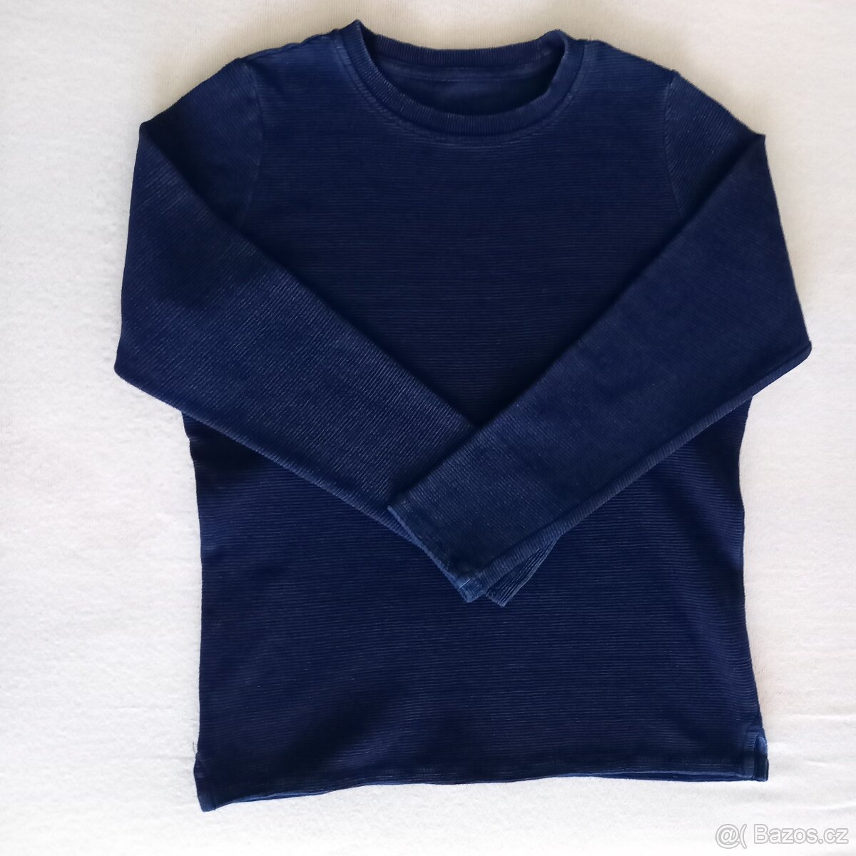 Prodám chlapeckou mikinu Tchibo, vel. 134-140, tmavě modré barvy. 100% bavlna. Celková délka 59cm, šíře přes hrudník 47cm. Odpovídá spíš větší velikosti 146, 152. Malé rozparky na bocích.