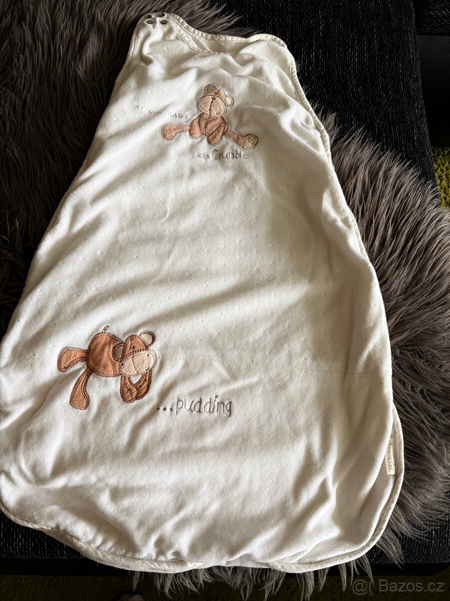 Spací pytel zn.Grobag vel.74/86 - [13.4. 2026]Prodám spací pytel,barva krémová ,obrázky sovička.Povrch sametový.Ramínka na patent,pravá strana propínací na zip.Pytel je teplejší TOG2.5….6-18 měsíců.Pěkný stav.