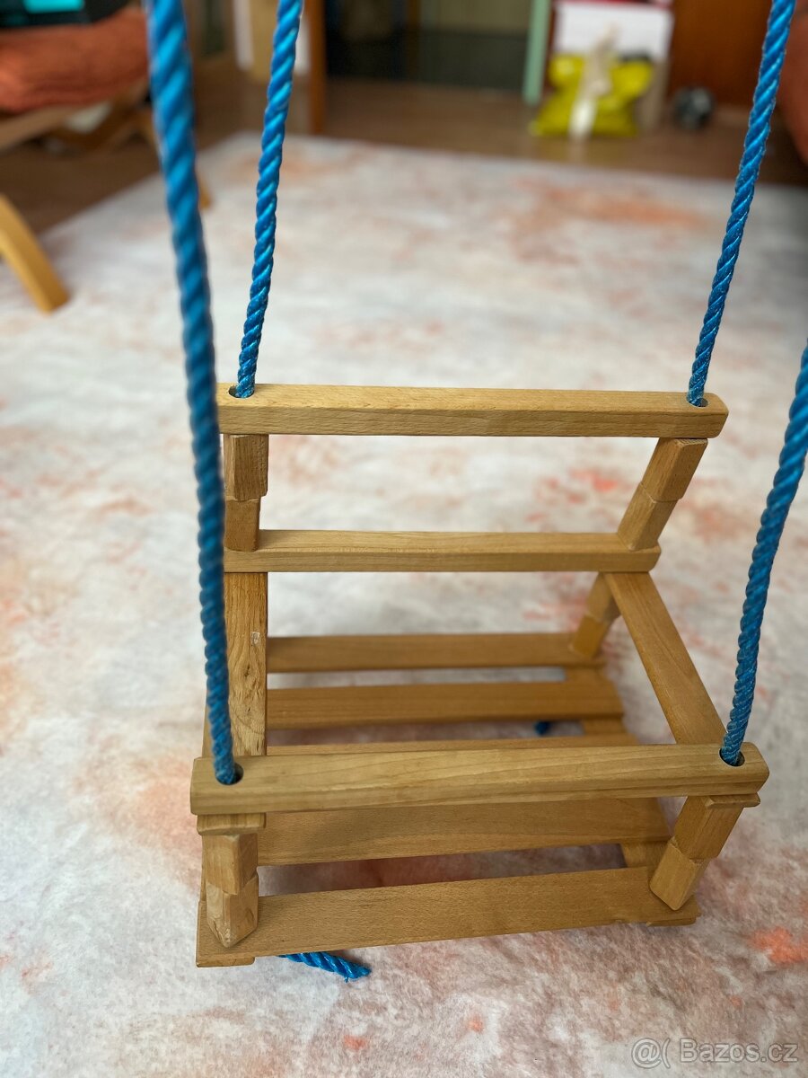 Prodám houpačku - [3.4. 2026]Prodám velmi kvalitní a zachovalou dřevěnou houpačku německé výroby pro vnitřní i venkovní použití. Jeden dřevěný korálek nahrazen (viz foto).