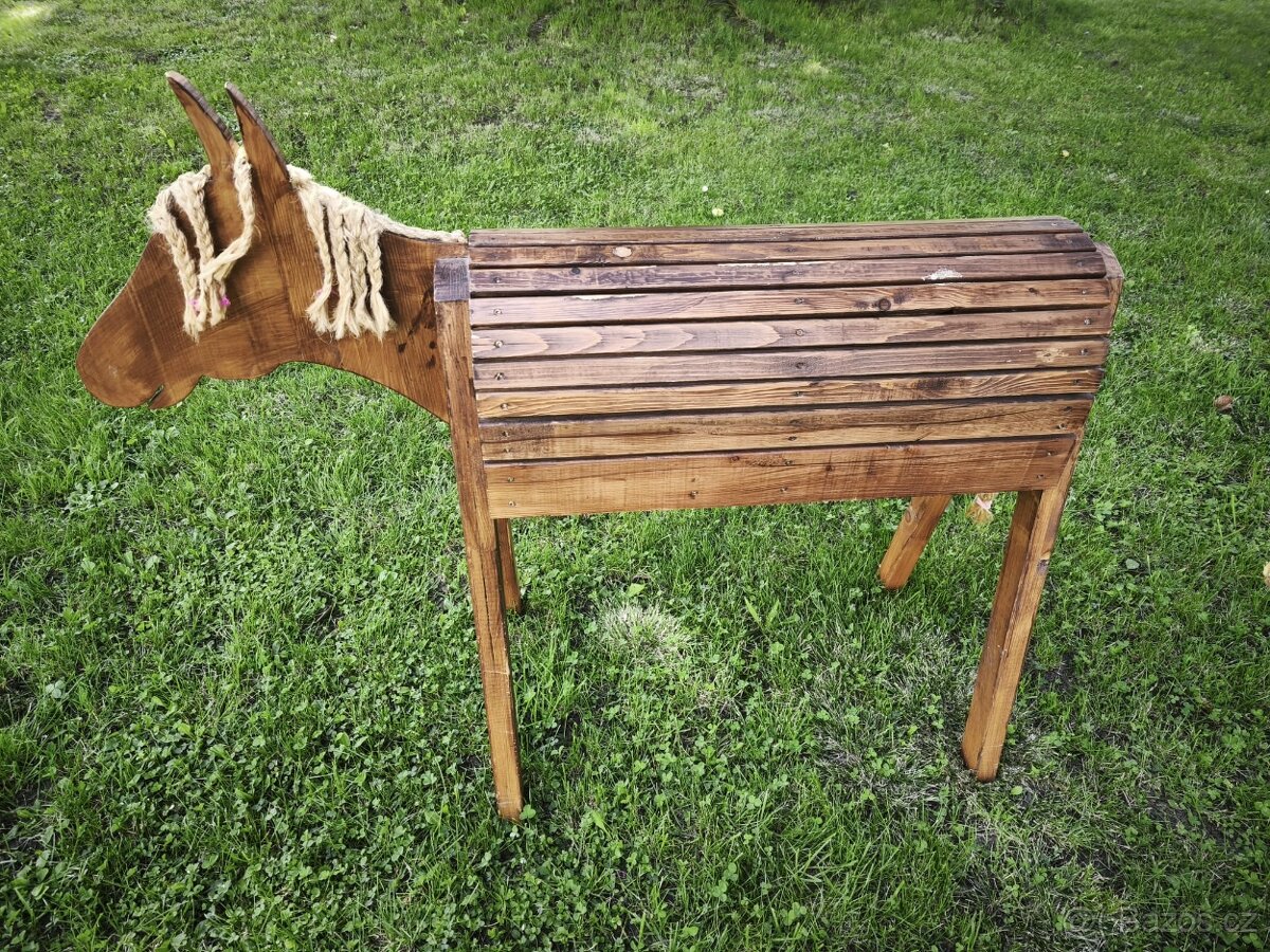 Prodám dřevěného koně ve velice dobrém stavu unese i dospělého. Rozměry jsou vidět na fotkách.