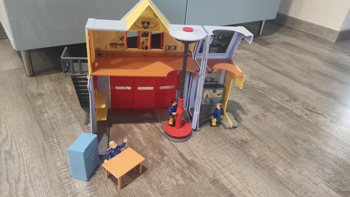 Stanice Hasič Sam garáž s alarmem, vjezdem s otevíracími vraty, tři figurky