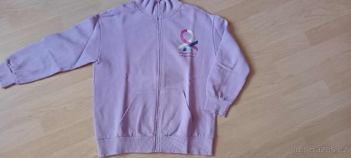 Dívčí mikina - [23.4. 2026]Moc pěkná dívčí mikina, zn. United colors of Benetton, vel.168 na 13-14 let. Má kapuci a dole na bocích malé rozparky. Mikina je jako nová, dcera měla snad jen jednou na sobě a teď má bohužel krátké rukávy. Opravdu super kousek!