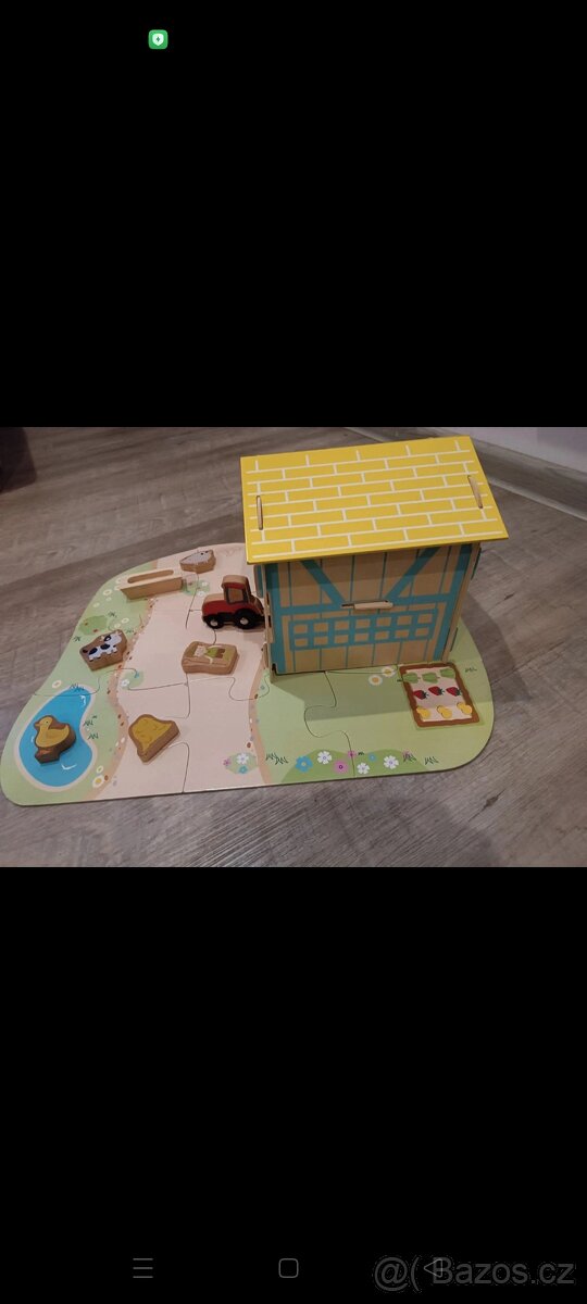 Dřevěné vkládačky a knížka Lev Lumba - [1.4. 2026]Prodám dřevěné vkládačky - auta, farma, zvířátka a knížku Lev Lumba. Knížka je nová, vkládačky hrané, ale v super stavu. Cena za vše.