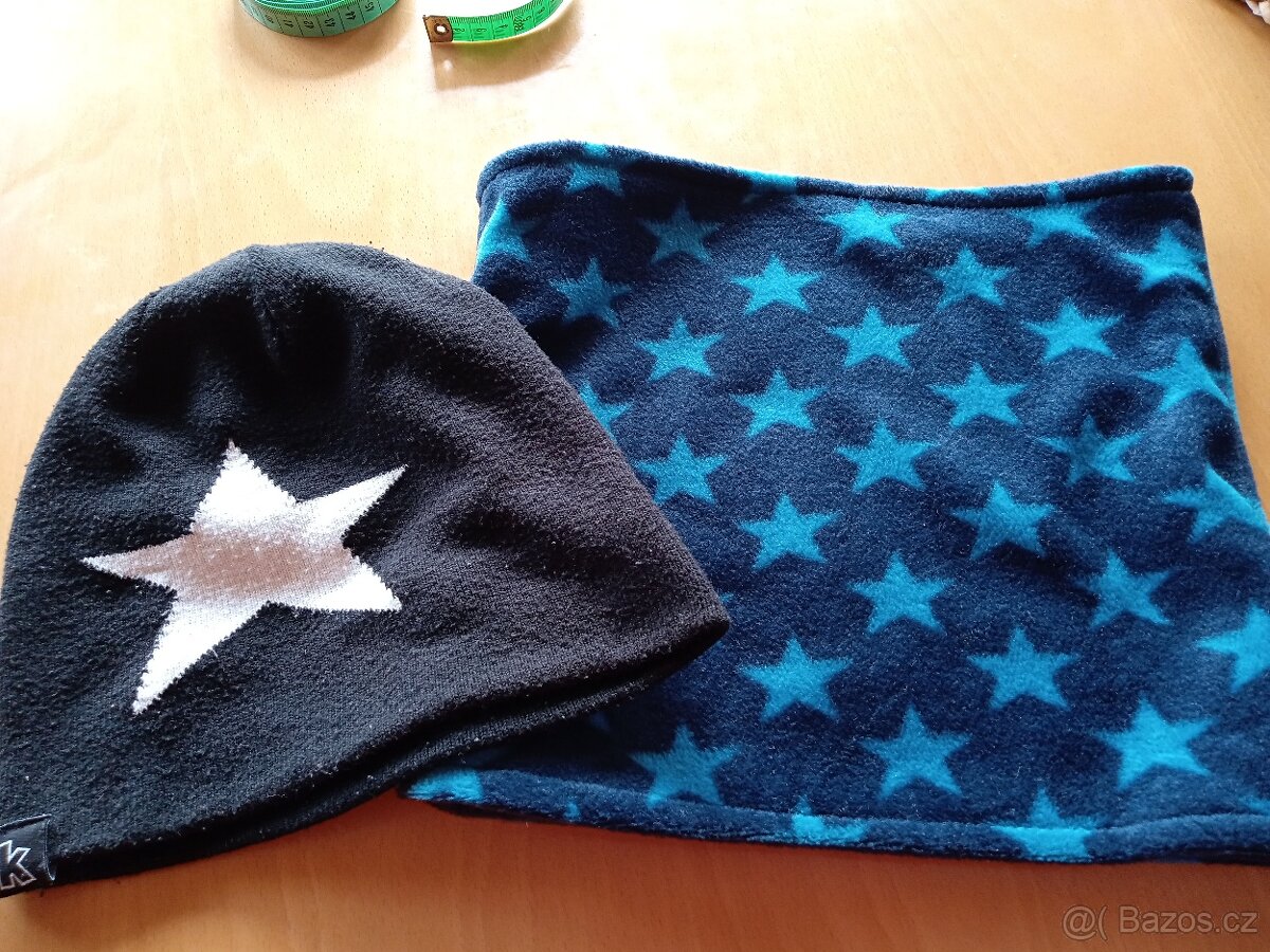 Čepice nošená, oboustranná za 50, nákrčník nový 100,- vel.110-116.