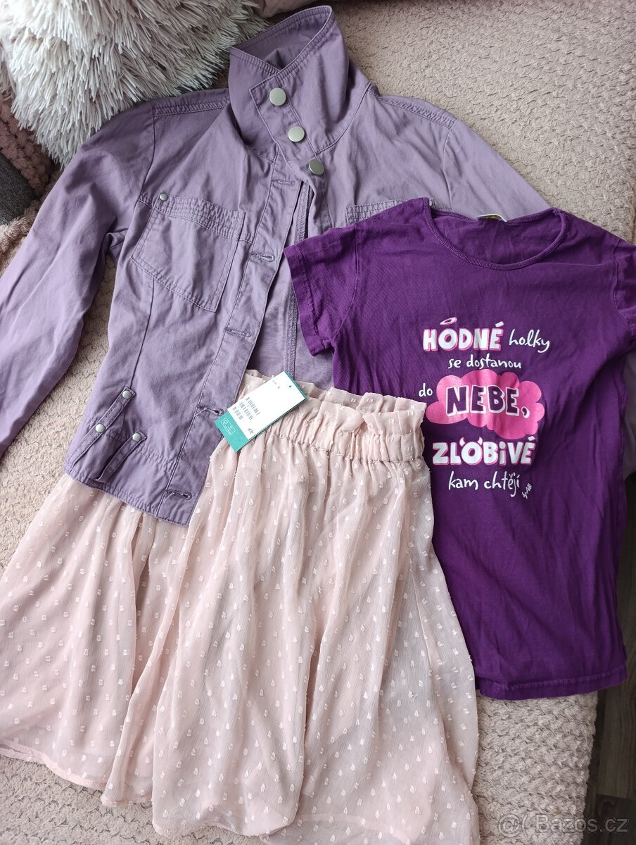 Nová sukýnka zn.H&M(s visačkou),bunda zn.Promod(téměř nenošená),nové tričko (bez visačky). Zdarma přidávám tričko a tepláky s malinkými vadami.