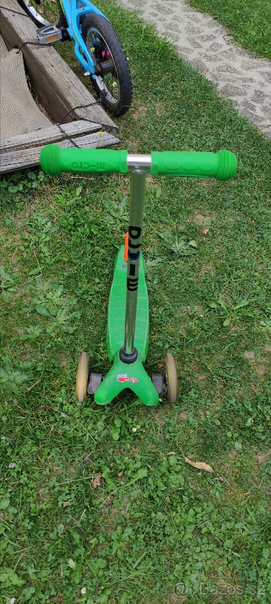 Rozebíratelná trojkoloběžka MINI MICRO – zelená – funkční - [11.4. 2026]Prodám použitou dětskou trojkoloběžku Mini Micro v zelené barvě. Koloběžka je plně funkční, jen nese známky běžného používání (škrábance, oděrky – viz foto). Skvělá pro děti na naučení stability. Velkou výhodou je, že se dá řídítková tyč snadno odděl ...