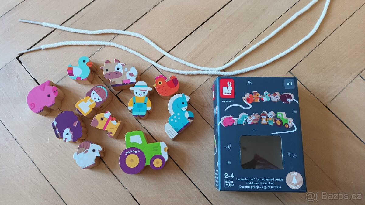 Dětské hračky - [17.3. 2026]1.-2. Dřevěné maxikorále Woody, navlékání na šňůrky, procvičování motoriky, koupeno nové, pěkný stav, Kč 150,-¨