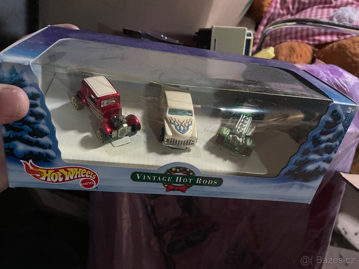 Prodám hezký 3 pack autíček Hot wheels z roku +- 2002-3 , nikdy neotevřený , prasklá průhledná fólie .