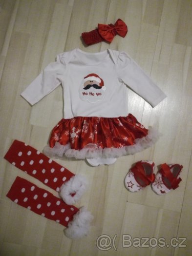 Nabizim vanocni komplet, ktery se sklada z celenky, bodycka se sukynkou, puncosek a boticek. Komplet je jako novy, my ho pouzili pouze v jeden den na vanocni foceni. Velikost 3 - 6 mesicu.
