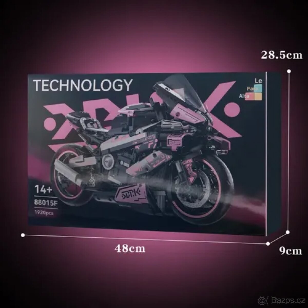 Kompletní, detailní konstrukční stavebnice růžového závodního motocyklu z 1920 dílků. Realistický model pro malé i velké fanoušky techniky.