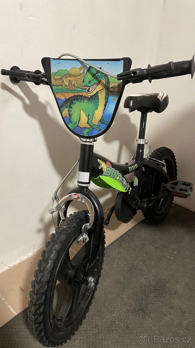 Prodám dětské kolo s motivem dinosaurů v pěkném stavu, plně funkční a připravené na jízdu. Ideální pro menší děti, které se učí jezdit nebo přecházejí z odrážedla na kolo.
