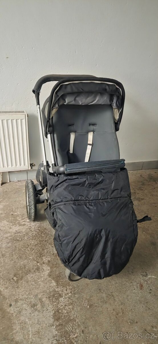 Prodám kombinovaný kočárek - [16.4. 2026]Nabízím k prodeji robustní a spolehlivý kombinovaný kočárek v neutrální tmavě hnědé barvě. Kočárek je postaven na velmi stabilním, stříbrném podvozku (pravděpodobně Bebe-confort Transporter nebo podobný model typu Quinny Buzz/Moodd), který skvěle zvl ...