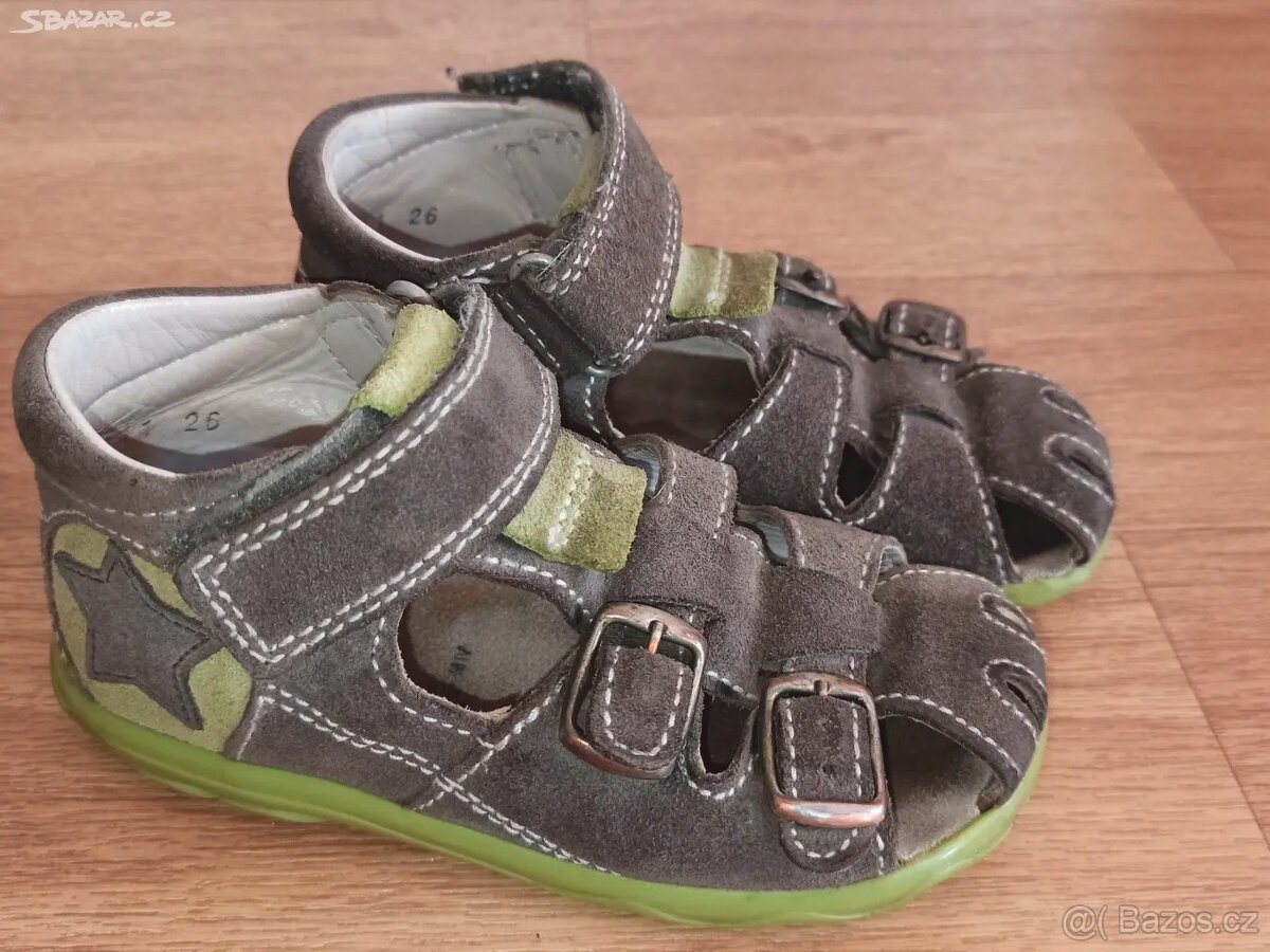 Dětské sandálky Richter - [12.4. 2026]Kožené sandálky v hezkém stavu, spíš pro užší nárt, na jedné botičce drobná šmouha, info viz foto na krabici. Zaslání možné.
